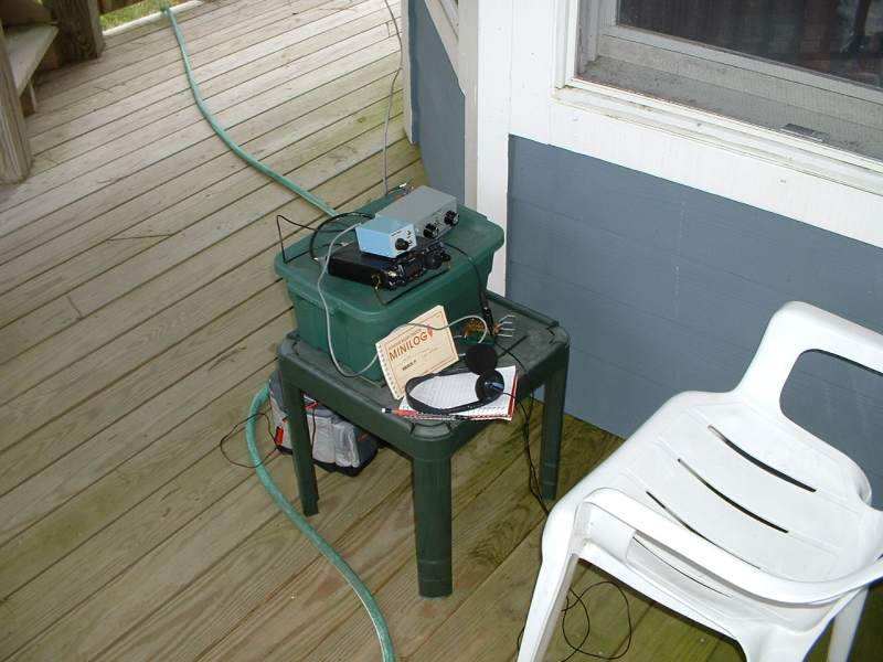 Once again, we made our nearly-annual vacation trip to the Outer Banks of North Carolina. This time we rented a house in the Corolla Light area situated right on Currituck Sound. Ham radio was a small part of the vacation but I managed to squeeze in 2 or 3 QSOs each day. I worked 40 meters in the morning and moved to 30 meters later in the afternoon and evening. As is my usual practice, I started out the week operating outdoors in the shade on the lower deck. I enjoy operating outdoors in the morning hours while downing my morning cup(s) of java. By mid-week though, the temperatures climbed and I moved my operations indoors. I set up in a small, unused game room and ran the feedline out through the door jamb. This turned out to be a convenient location; I could leave the equipment set up all the time and had the luxury of operating in the comfort of air conditioning. The antenna I used this time was a simple 52-foot doublet installed as an inverted vee and feed with 25 feet of cheap 300-ohm TV twinlead. This very simple antenna uses a small piece of fiberglass perf board for the center insulator. Each end of the doublet has a small loop made in it for tying off; no end insulators are used. I suspended the center of the antenna from the railing on the upper deck (about 25 feet up). One end was secured to the lower deck and the other end was tied off in a tree. With this combination of antenna and feedline, matching was a little touchy on 40 but very easy on 30 meters. Performance on these two bands (where I operated most of the time) was great. The rest of the equipment setup was also pretty basic stuff. I used a Yaesu FT-817 at 5 watts along with a NorCal keyer, NorCal paddles and a homebrew Z-match antenna tuner. Some highlights included working fellow EPA-QRP member W3EEK, Carl, one afternoon on 40 meters CW. Carl was operating mobile near Tamaqua, PA. I also managed to work a station in Belgium one evening on 30 meters.