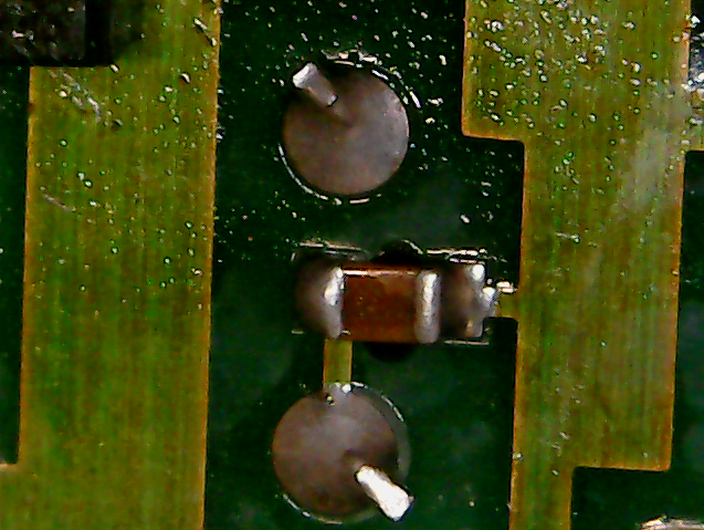 6.8K![]() Optical illusion, the resistor lead clears that adjacent pad. |