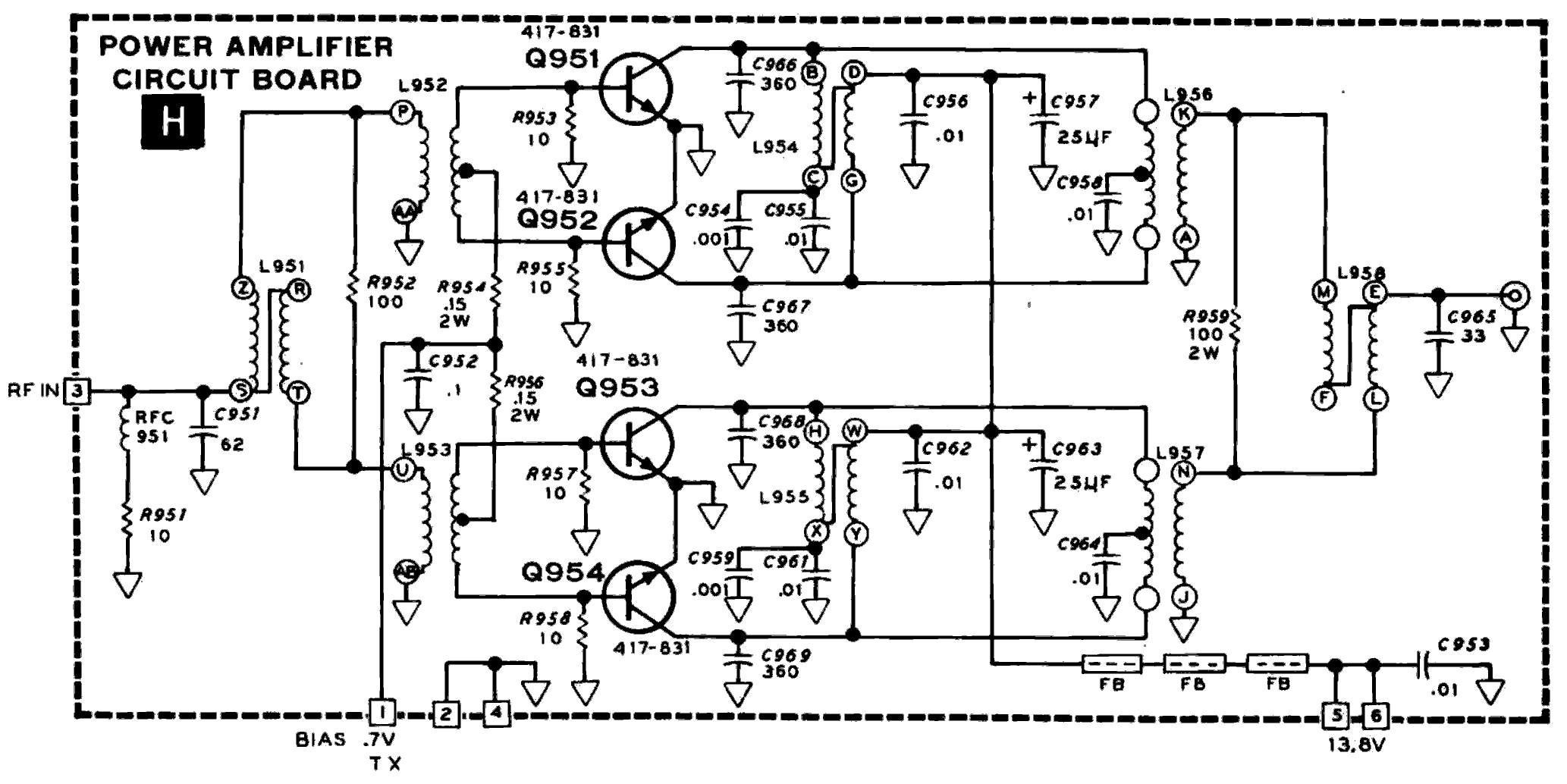No negative feedback! Should have negative feedback fron collector to base of each transistor for stability.