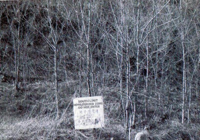 I saw one of these signs while driving from Cp. St Barbara to one of our Detachments near the JSA area. Since it did not have any information in English, I didn't think it was important. Since I didn't have a map, I was using a compass. Well, seems I was going mostly West, instead of South West. What a mistake that was. I was VERY lucky to run into a South Korean patrol IN SIDE the DMZ, and they escorted me out of it. They did not report it to the US Army, and neither did I. I was wondering why the road was so poorly maintained. It was a gravel road like the others at first, but got worse as I drove. At the point where I met the patrol, it was not much more than a trail. Seems that it was used only for DMZ Patrols. During the 60s, and early 70s, large parts of the southern boundary of the DMZ in the central area were only marked with wire. Where I came out of it in the western area, was fully fenced and had a huge gate to go through. It was guarded by South Korean soldiers. I did not understand the soldiers much earlier, but fully understood when I say which side of the gate that the guards were on, and where we came from.