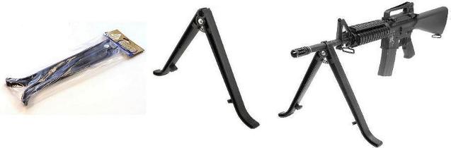 I wanted to do some sighting in of my Carbines, and especially the laser on my Advisor Carbine, so decided to try one of these light weight Plastic Bi Pods. This ended up being very handy, and so light weight and compact, I now keep it inside the side pocket of my range bag. You can do a google search and find them several places. Very Handy for the range, and only about $9. These pivot near the top, and are held snug against the barrel by a spring. I ordered mine from CH Kadels. Get on there mailing list. They have some unique items, and free shipping perioticlly.