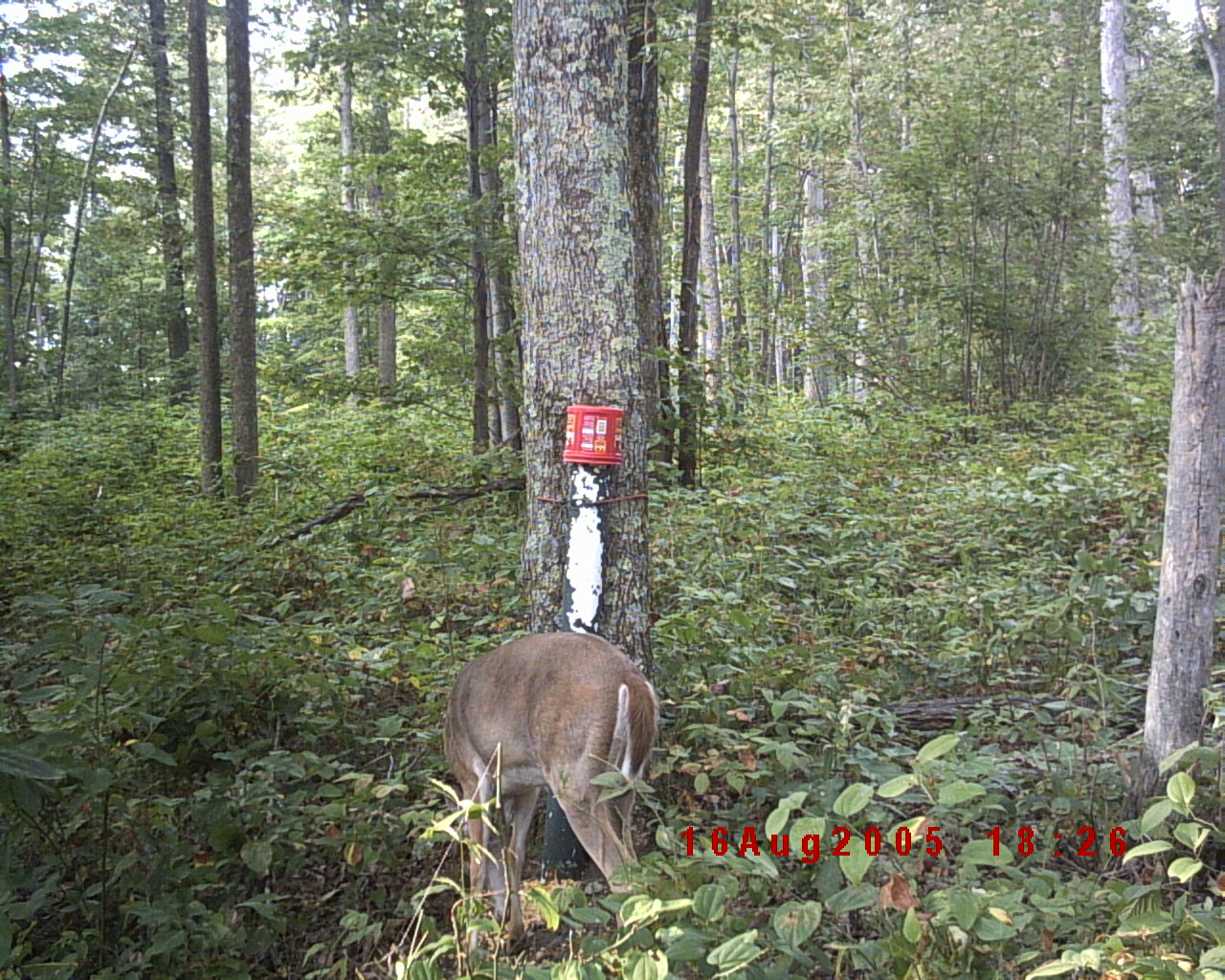 ARCHERY SEASON 2005 began on October 15th this year. Everyone here had very high hopes that we would be able to get a deer that first day of season. All of our preparation, planning and site location setups were all coming together. We placed cameras in August in areas we wanted to hunt. The cameras were setup 2 weeks before we decided to put out any feeders. After getting the first rolls from my camera and my son Jerod's camera developed we decided to put out he feeders. As you can see from the photos above, we had deer coming in. I signed up with the WV DNR to do the bow hunters survey and had my log sheet ready to start recording things.
