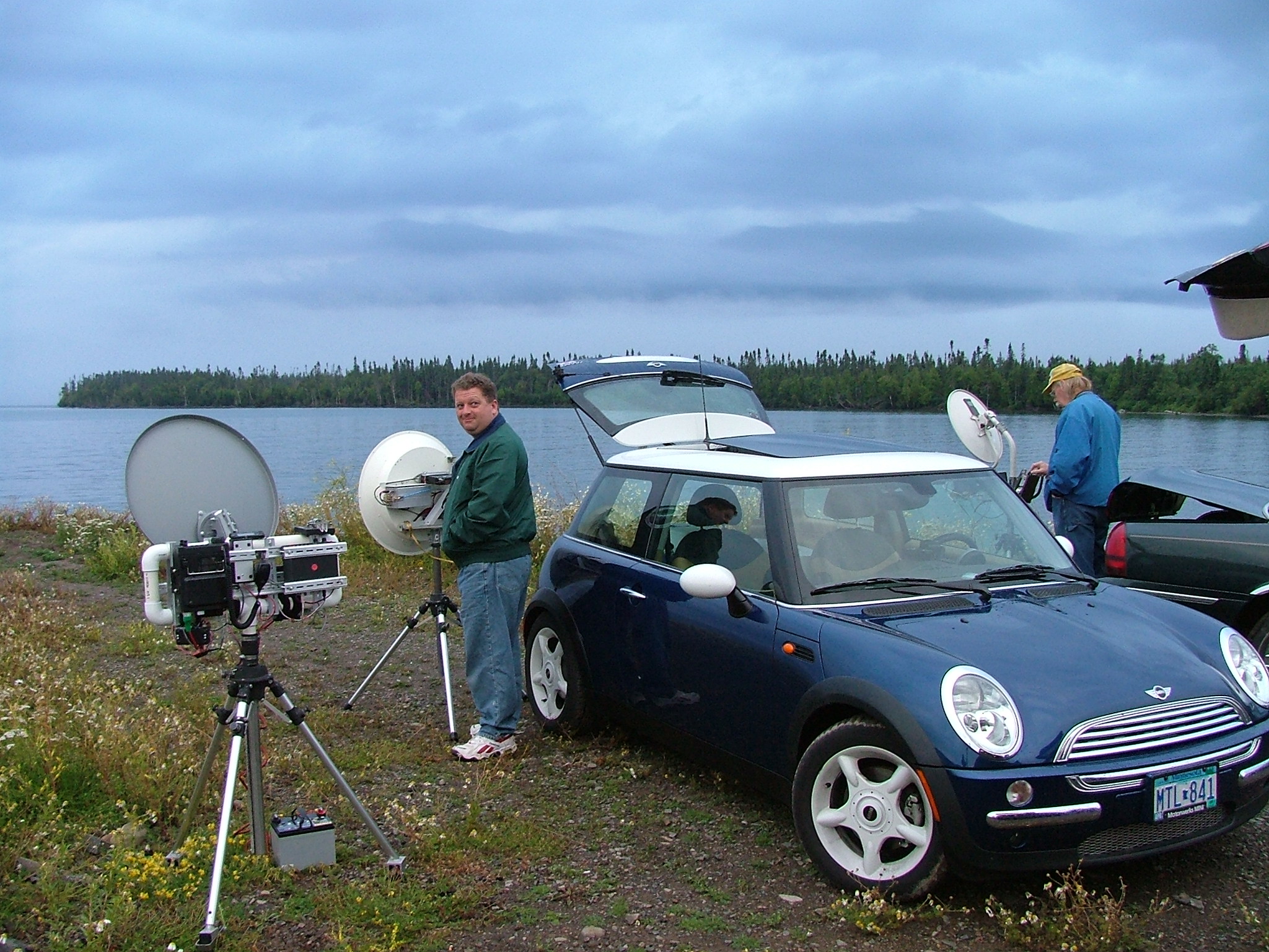 Signals from Grand Marais to Great Sand Bay were incredibly strong. I worked the usual 11 operators, and picked up yet a new South Shore operator, N8PUM, who had dropped in to work with our group at Great Sand Bay for a short time. About a half-hour later, two of the North Shore team members, KØGCJ and WØAUS, decided to take a short run to Pincushion Mountain (EN47US), and the rest of the North Shore team members worked them to get their uniques. I am really puzzled by the fact that I didn't pull out the camera at this stop. there was plenty of time, we had an interesting lineup of vehicles with dishes that would have made a pretty picture, we had plenty of time, we had enough light, and so on. I guess I was just so caught up in the radio operating that I forgot my secondary task of photojournalism! Oh well.
