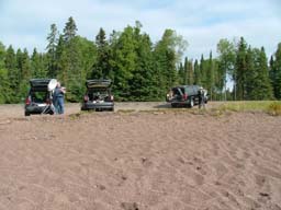 Heading south from Grand Portage, we found "Beachhead 133" with a little difficulty, but the rest of the North Shore team is not there. This is basically a very small beachfront pulloff from the main road, un-named, un-developed, and close to mile marker 133. We didn't know what else to call it. We presume that the rest of the North Shore team probably skipped past it, and so we continue on south. We reach the other North Shore team members on the liason radio, and they confirm that they have also bypassed Hovland and set up at "Beachhead 123", where they are working the South Shore team. So that's where we head. This, too, is an un-named, un-developed location, with a small stretch of shoreline just off the main highway, close to mile marker 123. We pull in just as the lead half of the North Shore team are packing up and pulling out.