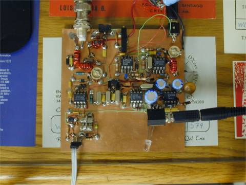 Below are some pictures of the SST under construction and in use. 14 months after my first SST QSO, my log showed 671 QSOs with the little rig and of those 204 were made while operating mobile. I developed a keyer and frequency counter for a PIC 16F84 Microcontroller and built that into the SST (see Keyer/AFA project). Later I added an RIT circuit.