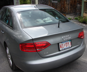 control/speaker cable (upper middle) snaking around the left back seat to the transceiver.