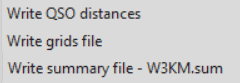 Write the file using the Log Write Cabrillo Log menu. In v4.5 and later, a query pop-up asks if you want to write only 4-digit grids to the Cabrillo, an ARRL requirement. The file name is {urCall.log}. Check the file to make sure it contains everything that the rules require. If you are submitting your score for club competition, make sure it says so in the Club: section of the Cabrillo file, otherwise make the Club: line blank.