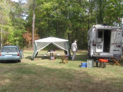 BARC set up portable stations at Camp Boddie on October 30 for the Pitt District Fall Camporee. Rick Cannon was the director of the camporee. Although there were not as many scouts as expected, it gave us a great opportunity to spend more time with them. Murray Merner, K4MHM, John McCoy, K4KBB, Taylor Millar, W4WTM and Dave Langley, W4YDY, set up three stations. Johns Yasue FT-897, Murrays Elecraft K1 and an Icom 756PROIII were demonstrated. Antennas used were Johns Tarheel on top of his camper and his Tarheel 75A mounted on the ground. Also the Icom was connected to the 75A mounted on W4YDYs car for a third antenna. The boys from Troop 46 asked a lot of questions and several expressed a desire to get their Amateur Radio license.