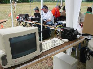 | Terry, KG4WEW, and Carolyn Van Houten watch Peter Van Houten, KG4WEZ, track the satellites. | Operators still looking for contest points on Sunday morning. | |||||||||||||||||||||||||||||||||||||||||||||||||||||||
