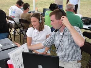 Amanda Karr, KI4IWS, and Eric Christensen, KF4OTN, operate on 40 meters. Amanda really ran up the points! |