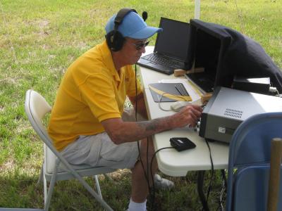 Murray, K4MHM, finishing up on the 20 meter station. |