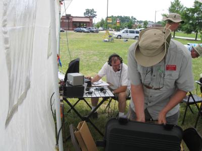 around him. Murray, K4MHM, is packing up one of the radios. |