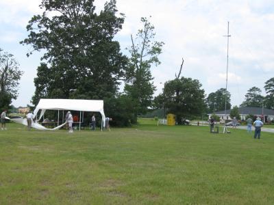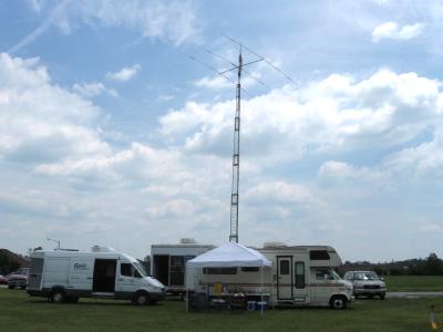 Satellite and 6 meter station in near shelter and HF in the far white shelter. The center gray roof shelter is the food area. |