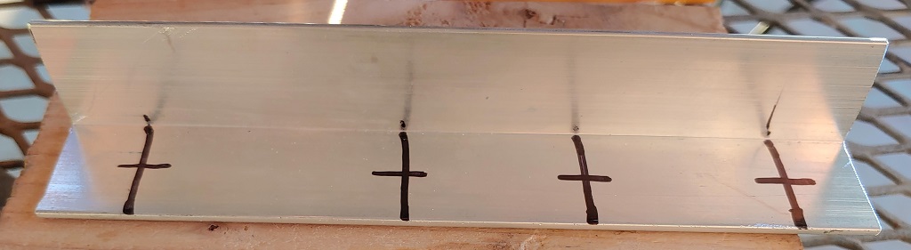 I use a jig saw with a medium metal cutting blade (24 TPI) to cut the angle stock. You could also use a hack saw, since the aluminum cuts easily. The holes are also easy to drill, and I use a 1/8" pilot drill to verify the spacing.