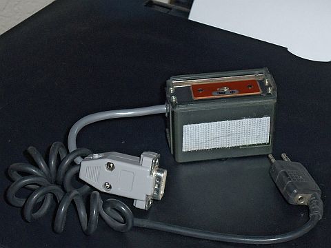 Front view showing velcro for the TT3+, and the two connectors. Note the single db9 with two cables--one for the HT