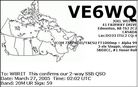 This page contains QSL cards from N. America, but outside the contiguous 48 states. For US QSL cards see this PAGE