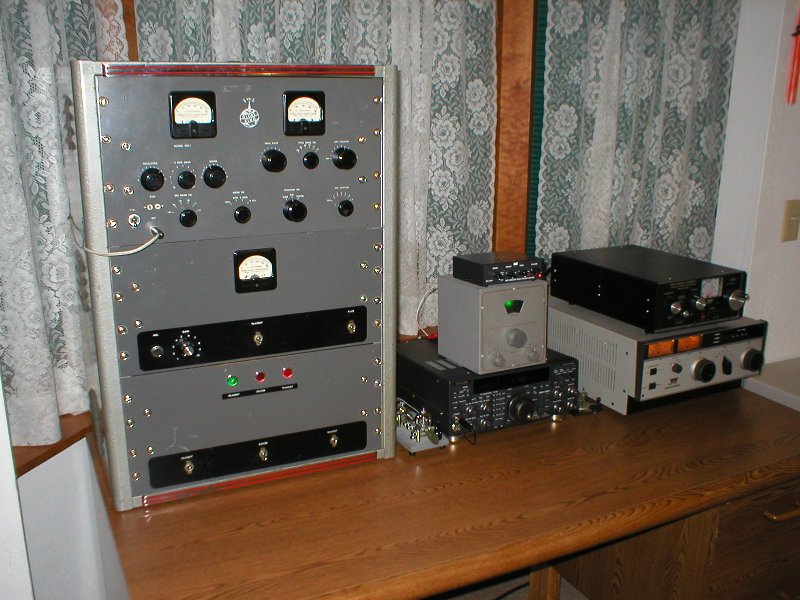 THIS STATION USES A COLLINS 75S-3 RECEIVER, 32S-3 TRANSMITTER AND HEATHKIT SB-200 KW AMP. A VIKING 2 AND HEATHKIT AT-1 IS ON THE LEFT.