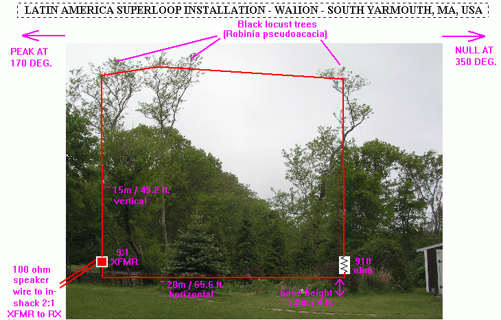 Antenna-1: Cardioid pattern SuperLoop 10m vertical by 11m horizontal (peak 165 deg., null 345 deg.)