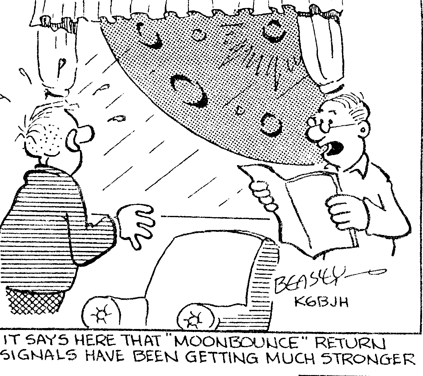 Pat reported that there was a photo of Pat, Dave and Gordon working the radio for the special event station commemorating the first manned landing on the moon in a Grumman Lunar Module in the ISA Newsbriefs, published by Northrop Grumman.