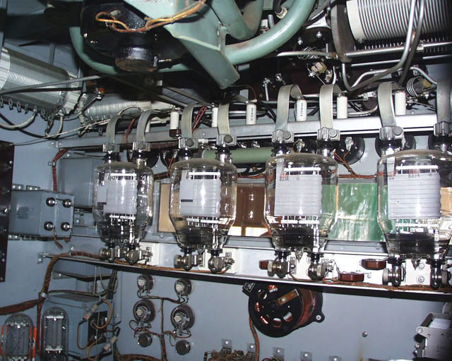 The audio is push-pull all the way from the first to the last stage. The 833s are driven by a pair of 845s in a cathode follower arrangement. The modulation transformer is a UTC. My guess is that it's 300 lb of iron!