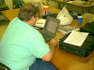 | Here's Mike KC5OKP, our Vice President, caught red handed playing solitaire. Of course that's what he does best! lol |