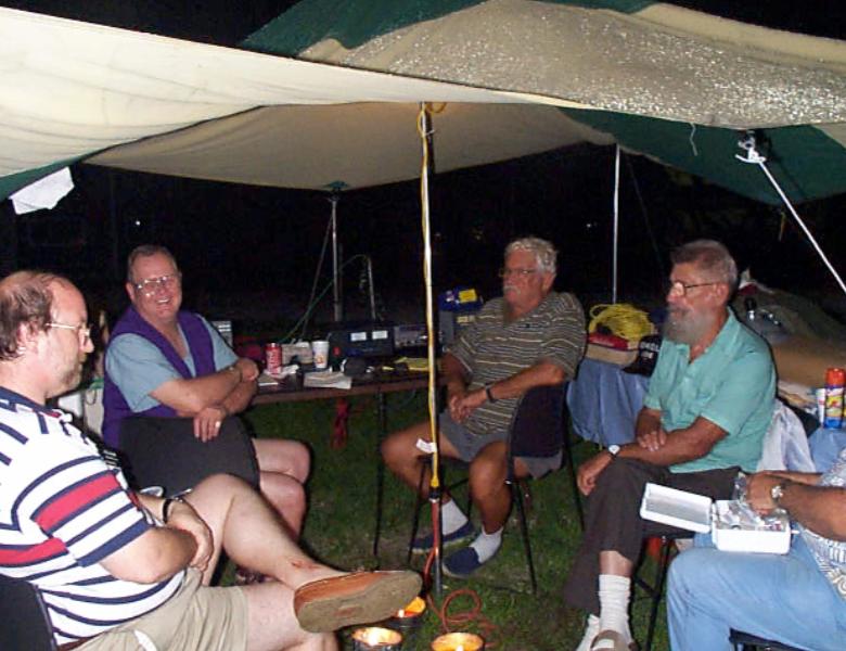 | Dave-AE4MR (left) from the WCF Committee joins in the late night conversation at MOSI. |