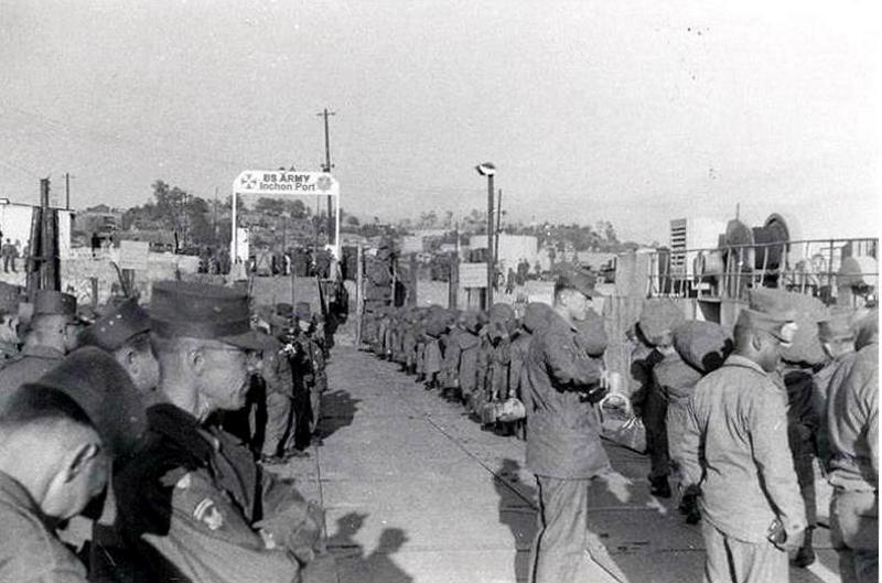 Waiting to load on the Troop Ship at Inchon to go home.