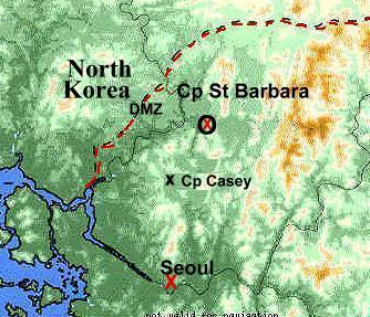 After doing some checking, I found out that I had taken Rt 322 instead of 37 in Chon-gok (no signs then), and it took me more west,, than south west. I had past to the west of Camp Walley, then came back through the fence just south west of it, and ended up coming across Libby Bridge, and into the area that I was headed to.
