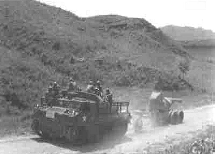 That is the no BS 1SG McGuire one mean _ _ _ and the Intel NCO observing the impact area ,round exploding on the far hill.( B/Btry firing. )