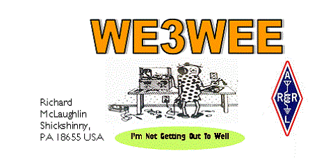 Thanks for stopping by! Ham Radio is a great hobby! This website is about my interests, including Amateur Radio, Links and Projects. I started this website in April 2015. I have some previous experience with web design and creating websites. I enjoyed this experience while 10 meters is slow. I have spent many hours changing and tweaking the sites pages. I have just gone back to plain and simple look. I love to keep this site up to date, so please keep checking back. You can browse all of my pages via the main menu. I really hope you enjoy your visit here, and please contact me, with any suggestions or improvements. My email address is at the bottom of each page, or visits my contact page. My name is Rich, and my ham radio call sign is WE3WEE. For the past 14 years, I have work full time, as a field service engineer for a large medical equipment company. I also worked in area hospitals as a Biomed Technician. I completed my Technician Class License in April 2014, and will soon be taking my General License. I have learned quite a bit along the way, My interest started when I was a young boy, and my father bought me a short wave receiver, and I have been hooked ever since. I also have owned many CB radios and had a FCC license, KBP4418. When I received my new call sign, for amateur radio from the FCC, I thought it was a tongue twister. So I purchased a vanity license. My Radio is a Yaesu FT-897 with a MD-100 mike, and I use a straight wire, end-feed antenna. I love digital, and you can find me on JT-65 HF most of the time. I also use Echo Link, with a vanity node number of 59913.