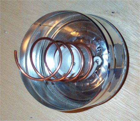 that has a diameter of about 4 inches/10 cm. I built it ala K5OE, i.e. about