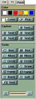 From the File Menu, load an image into the GUI, by browsing your computer folders. Double click on the image file name and it will load into the Main Window. Now select the Paint menu, shown at right, by clicking on the paint tab. This menu provides an array of image painting tools. Play around with them and customize your image by adding your call sign. Again I must refer you to the help files you printed off. The customization is very powerful. All sorts of effects can be added to your image. |