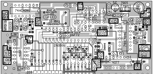 This counter was first known as the Modular Dial developed by Bill Carver, W7AAZ, and published in the Spring 1998 issue of Communications Quarterly. When I took a serious look at the Modular Dial in 2006 it seemed a good match for the Electroluminescent Receiver Kit (ELR). I was looking for a counter with an LED display and flexible add/subtract offset frequency functions. When I contacted Bill, W7AAZ, he handed over the project and told me to run with it. There was a lot of work to do. The original PIC16C62 chip had become obsolete and the code needed some rewriting to work with the modern updated PIC16F72. There had been a lot of updating on the way code was written since the original PIC chip. A lot of help, study, and rewriting was needed to get it working. Luckily, there was a PIC programmer who worked across the street from my work place, a huge surprise, since I never expected to find anyone who had even heard of PICs in my little town of Pampa, Tx. He had been a programmer for over 10 years and understood Bill's code. We met at lunch, working on paper napkins, until we got it working. I also had the help of another dyed-in-the-wool homebrewer who had considerable PCB design work under his belt. His suggestions on layout and some circuit design was invaluable. He followed along with the design of the PCB helping with final decisions on the layout. The original board was redesigned with most of the interface circuits integrated on the PCB so it would be easy for ELR and general purpose use in other receivers/projects as well. The goal of the new design was to make it as universally usable as possible with the option of using any LED display of the builder's choice. |