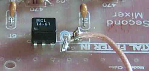 This image shows the coax cable connecting the "Xtal Filter Out" to the "Xtal Filter In" from Board 1 to Board 2. Shielded cable should always be used here, or the second mixer will pick up all kinds of signals. |