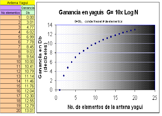 La ganancia de las antenas se mide en decibeles, que es la unidad de medida adoptada para este tipo de parámetros. A mayor cantidad de decibeles, mejor calidad de la antena. Para determinar la ganancia se establece la intensidad en un punto, irradiada por una antena omnidireccional sin ganancia y la intensidad de la señal emitida por la antena direccional. La relación de estas señales se utiliza para obtener los decibeles de ganancia.