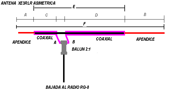 La alimentación de la antena no queda al centro de la misma por ello es un dipolo asimetrico que compensa su impedancia con un balun 2:1