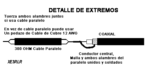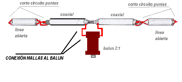 En la construcción de la antena, se utilizarán 14.03 metros de cable coaxial y dos apendices en los extremos, Y un balun 2 :1 , para transformar la impedancia de 100 ohms a 50 ohms.