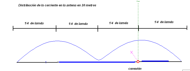 Distribución de las corrientes a lo largo de la antena en la banda de 20 metros