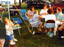 FIELD DAYEach year, during the last full weekend of June, hams take part in a weekend long competition of making as many radio contacts as possible on as many frequencies via several different modes of operation including Packet, HF, VHF, Satellite, CW and SSB. The actual Field Day transmitting session runs for 24 hours continuously, with many hams staying up all night, taking turns at the radio stations and camping out at the site. The event is designed to show the amateur radio operators ability to set up emergency communications at a given notice, invite the public to come and participate and see what ham radio is all about. All ages take part in the event as some scenes from former XWARN field days show below.