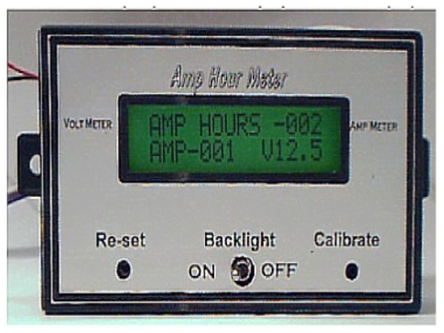 I can also supply a programmed PIC 16F84 or 16F628 for AUD 30.00 (plus p.p.) if you do not have a programmer.The AMP Hourmeter displays AmpHours (up to 999Ah), Instant Amps (up to 300) and voltage (eg 12.3)on a 2 line, 16 character (backlit) display.