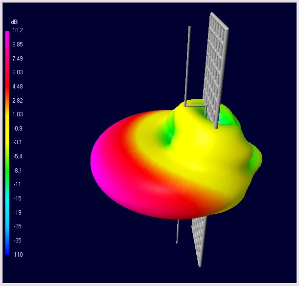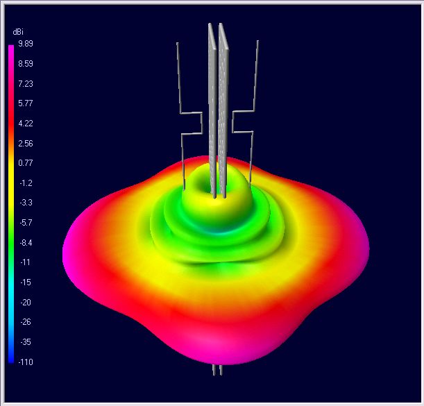 Dve Amosa 7 antene postavljene "ledja u ledja" na rastojanju od pola talasne dužine (60 mm) daju dijagram kao na gornjoj slici.