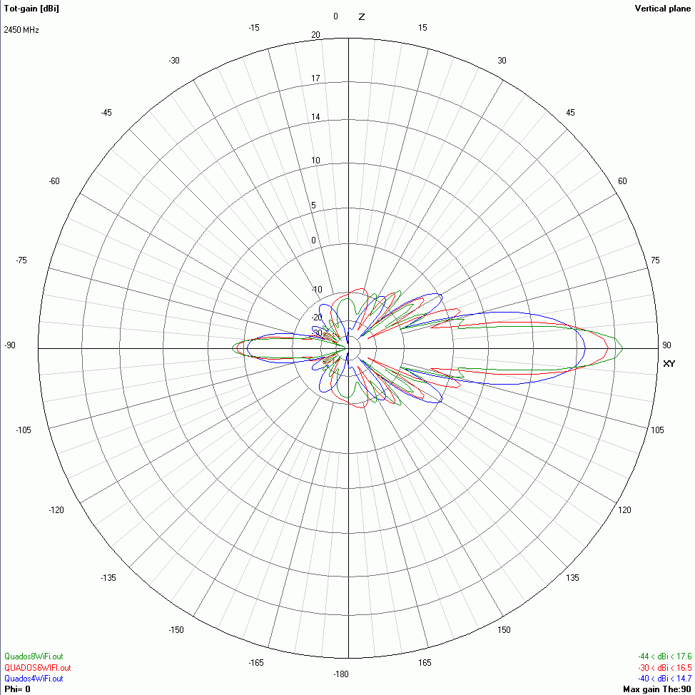 New horizontal polarization antenna with 8 Quads and coverage angle of 70 deg. for -3 dB and 90 deg. for -6 dB for 2.4 GHz Wireless LAN Access Points.