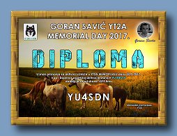 Diplome - YU1BBV/P - YT2A Memorijal 2017