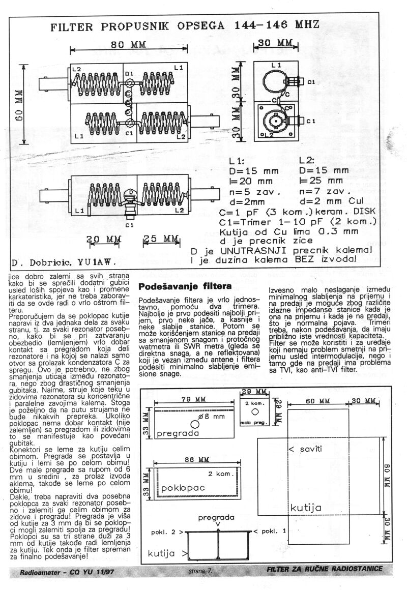 Filter propusnik opsega 144-146 MHz /zip 489 kB/ (1997.)