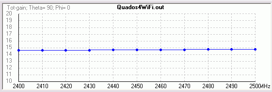 New horizontal polarization antenna with 4 Quads and coverage angle of 70 deg. for -3 dB and 90 deg. for -6 dB for 2.4 GHz Wireless LAN Access Points.
