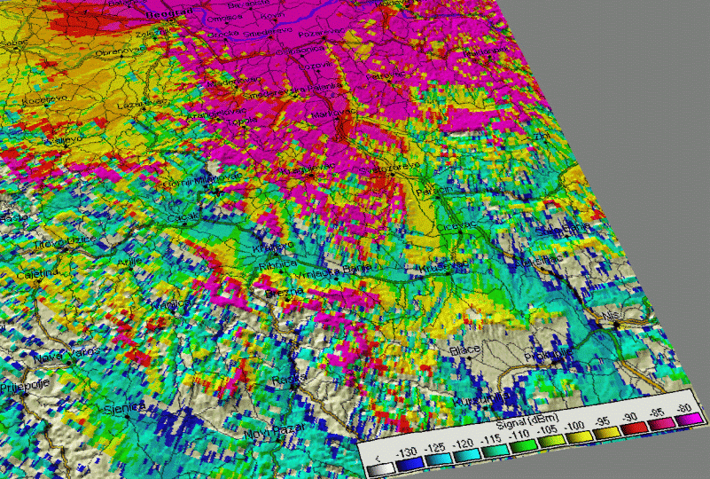 Kako izbor lokacije za kontest najviše zavisi od toga kako koji pravci "idu" na prijemu i predaji, uradio sam dve simulacije pomoću izvanrednog programa za analizu prostiranja radio talasa preko reljefa, koji je napisao Roger Coude VE2DBE.
