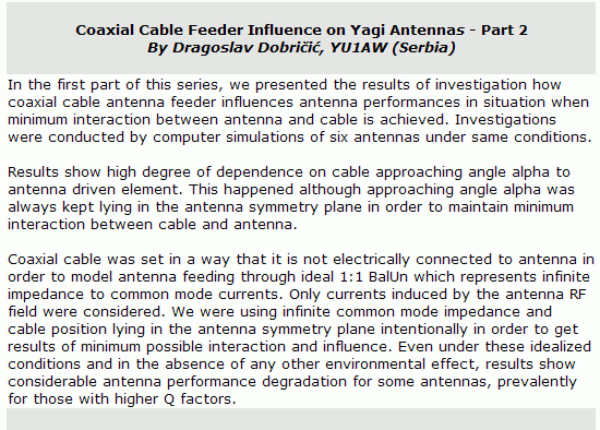 Coaxial Cable Feeder Influence on Yagi Antennas - Part 2