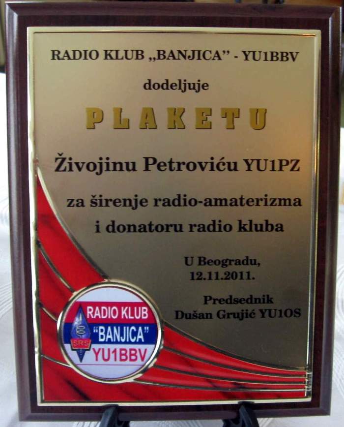 Živojin Petrović - YU1PZ, br. plakete 01