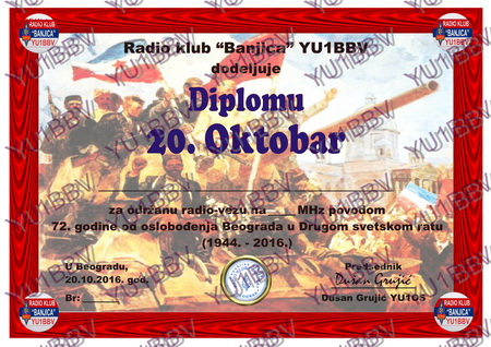 - Redni broj diplome koji ste dobili od stanice YU1BBV.