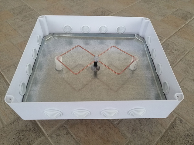 BiQUAD-антена изработена со правоаголен рефлектор од поцинкуван лим: